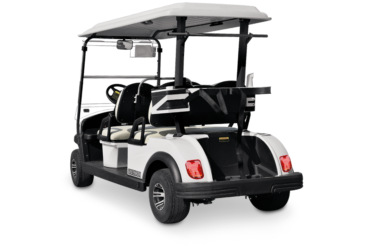 同向四座高爾夫球車,可以供4名球手和2名球童同時駕乘,也可以供3名球手和3名球童同時駕乘。 本車秉承GREENMAN 電動車一貫的優雅、高端的理念,造型美觀大方; 2500mm超大軸距、舒適的豪華座椅、充分考慮人機工程學的靠背和扶手設計,